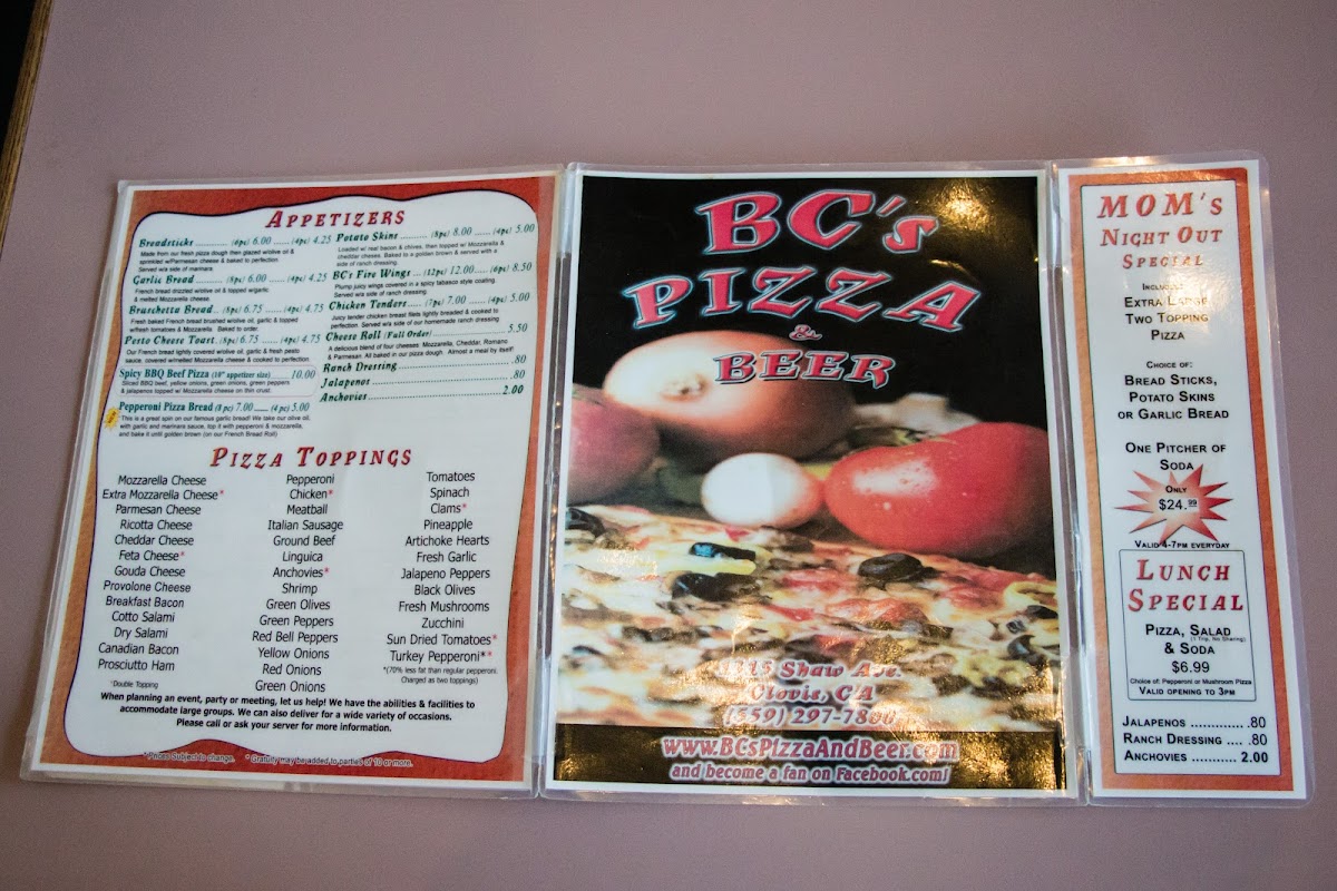 Welcome to BC's Pizza & Beer, a beloved pizza haven located in Clovis, CA. Here, the aroma of freshly baked pizza mingles with the rich scent of craft beer, creating a vibrant dining atmosphere. Renowned for its fluffy, crunchy crust and fresh ingredients, BC's serves pizzas that are nothing short of extraordinary. Each slice comes adorned with a variety of flavorful sauces that tantalize your taste buds.